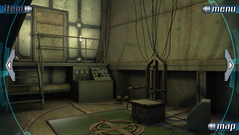 A pre-rendered 3D background from Zero Escape:999. UI visible as it is not possible to toggle off
