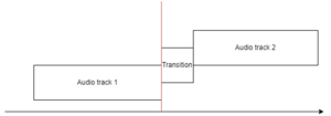 - Transition. A transition is added to the prior audio track as it receives the command to stop playing. This transition is oftentimes a music snippet that is seamlessly added to the stopping piece to conclude it with more finality than a fade could or to transitions into a new piece.