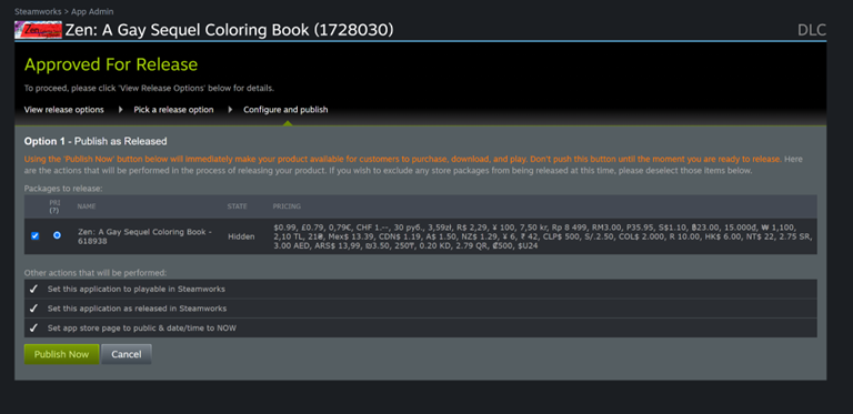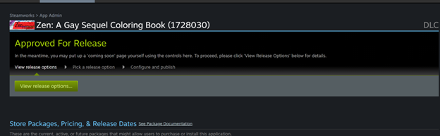 After the page and build are approved, you'll be able to release the DLC for purchase and download.