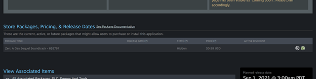 - Remember that the soundtrack can release at any point after the main game's store page is available