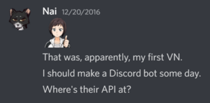 /renderplum TEXTor/rendertheme TEXT, replacingTEXTwith the text to put on the image. - When it's her turn to add something to the Daily Message channel, she might give some VN-dev-related advice, such as shouting out a resource made by a Devtalk supporter.