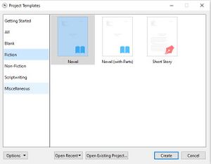 Scrivener offers many robust tools for creative writing. Amongst the most powerful are the preloaded templates offered whenever you start a new project. Templates inlcuded are:
